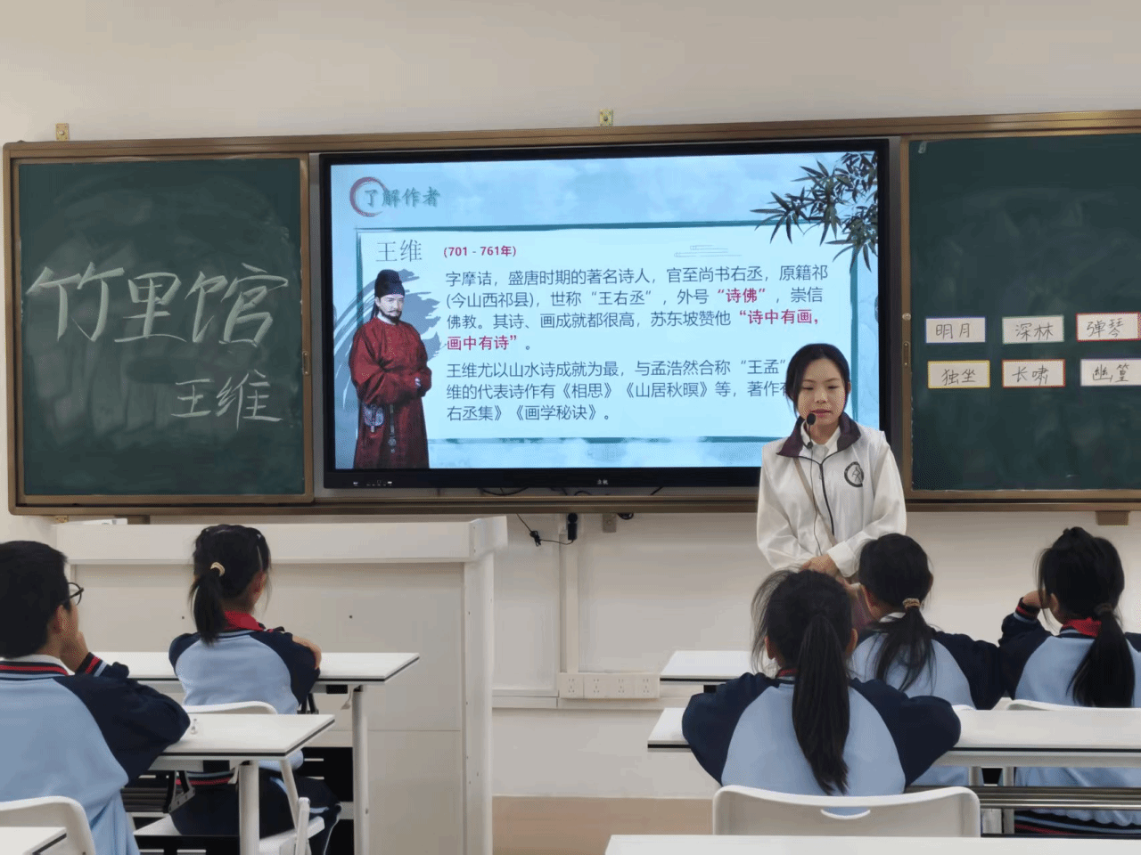 这堂课里小朋友们不仅感受到了王维在竹林里的孤独,更深刻体会到“诗中有画”的高超境界。课堂在最后一遍朗读中落下帷幕。