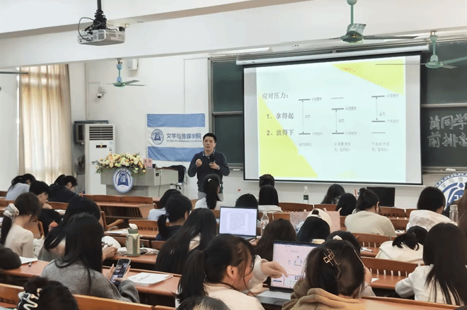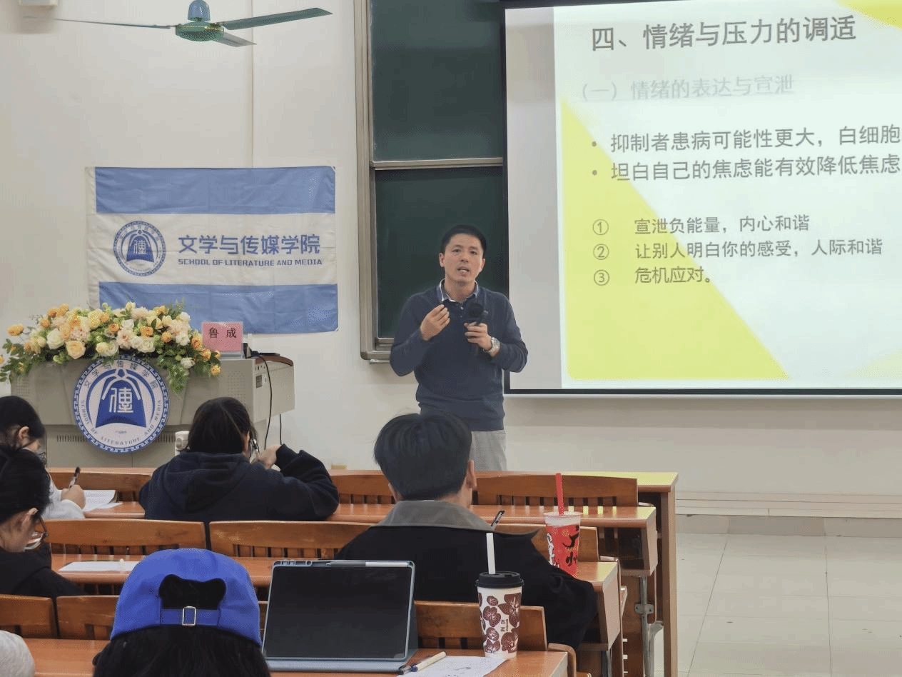 讲座尾声,鲁老师总结道:长期压力易导致消极情绪,影响身心健康,而合理表达、调整期望、借助社会支持、坚持放松训练,都是有效的调适路径。本次讲座通过互动、案例与方法相结合的形式,让同学们在体验中学习,掌握与情绪共处的智慧。