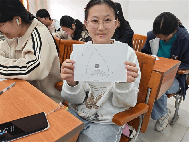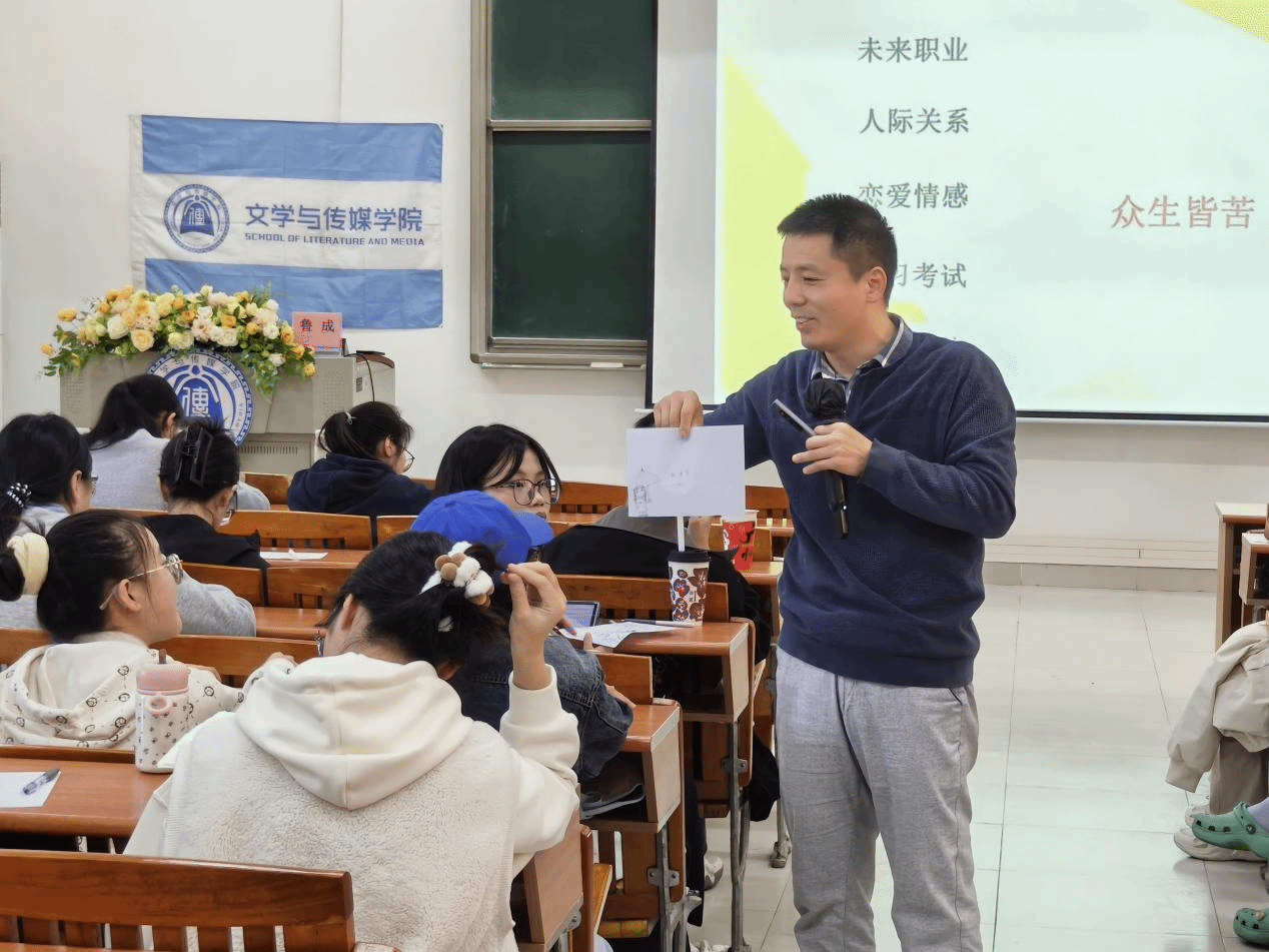 在“情绪觉察与表达”环节,鲁老师邀请同学们绘制“雨中之人”,通过画作分析个人的压力来源与应对资源。他还结合马加爵、林森浩等真实案例,警示长期压抑情绪可能带来的极端后果,并强调:抑制情绪会增加患病风险,而坦诚表达能有效降低焦虑,促进内心与人际和谐。