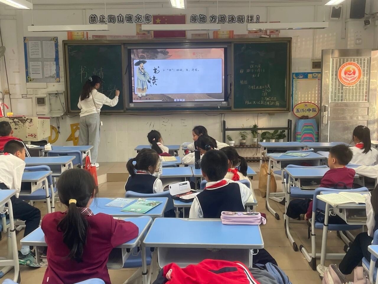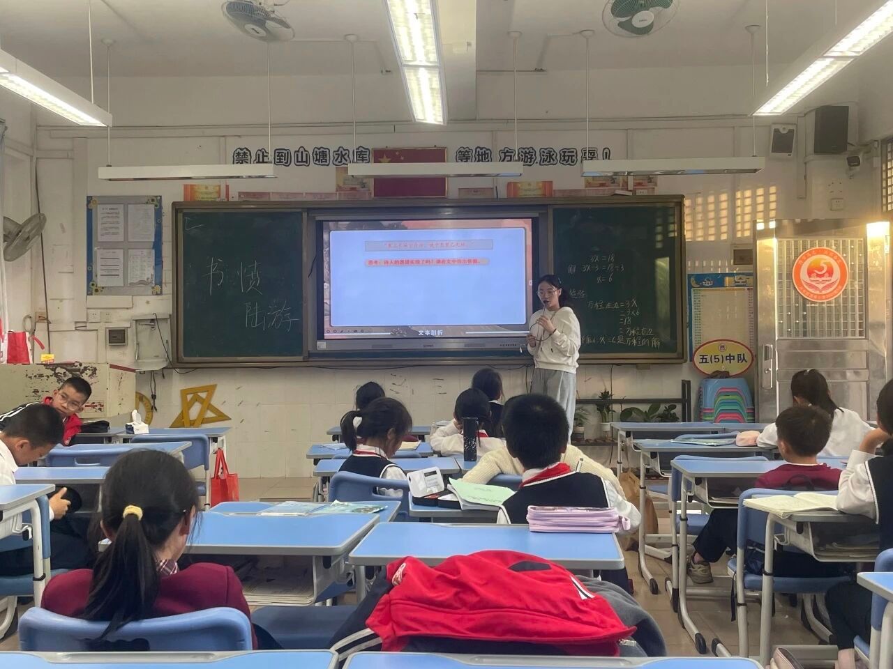 秋意渐浓,诗意正浓。2025年11月24日下午,语言文字服务团队的成员们在指导老师寇梦鸥老师的带领下,走进从化区流溪小学,开展了一场以陆游《书愤》为主题的古诗词系列课堂。本次课程由2023级汉语言文学专业武誉坷同学担任小老师,带领同学们穿越千年,感受南宋诗人陆游那沉郁顿挫的家国情怀。