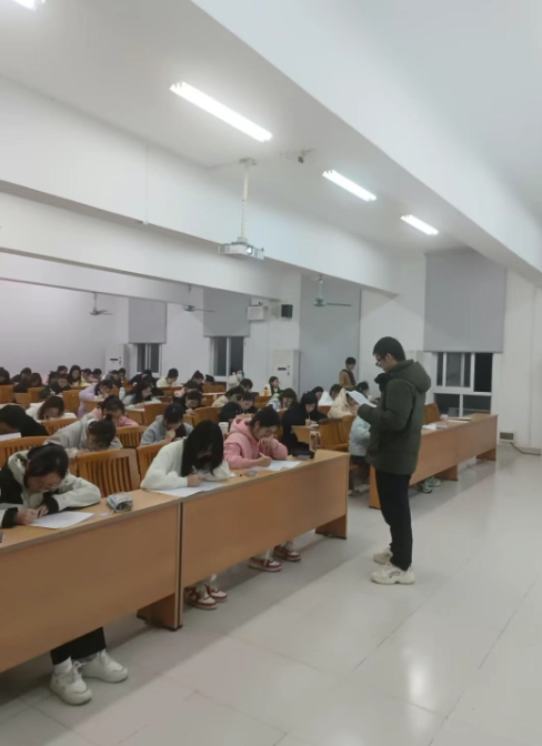考试期间,学院创新构建“学院领导+两办老师+任课教师”的三级联动巡考机制,由学院领导带队,教务办公室与学生工作办公室相关人员随同组成的巡考组深入各考场,开展全方位、全覆盖的巡考检查。 巡考人员重点巡查考场秩序、监考教师履职情况及学生考试状态,仔细核查考生双证(学生证、身份证)是否齐全、试卷管理是否严格、考场布置是否规范。从巡考情况看,各考场秩序井然,监考教师认真负责,严格执行“签到表发放”“诚信承诺书填写”“答题纸信息核查”等监考流程;学生自觉遵守考试纪律,沉着应考,展现出良好的学风与考风。对巡考中发现的细节问题,巡考组现场提出整改意见,并督促立即落实,确保考试工作顺利进行。