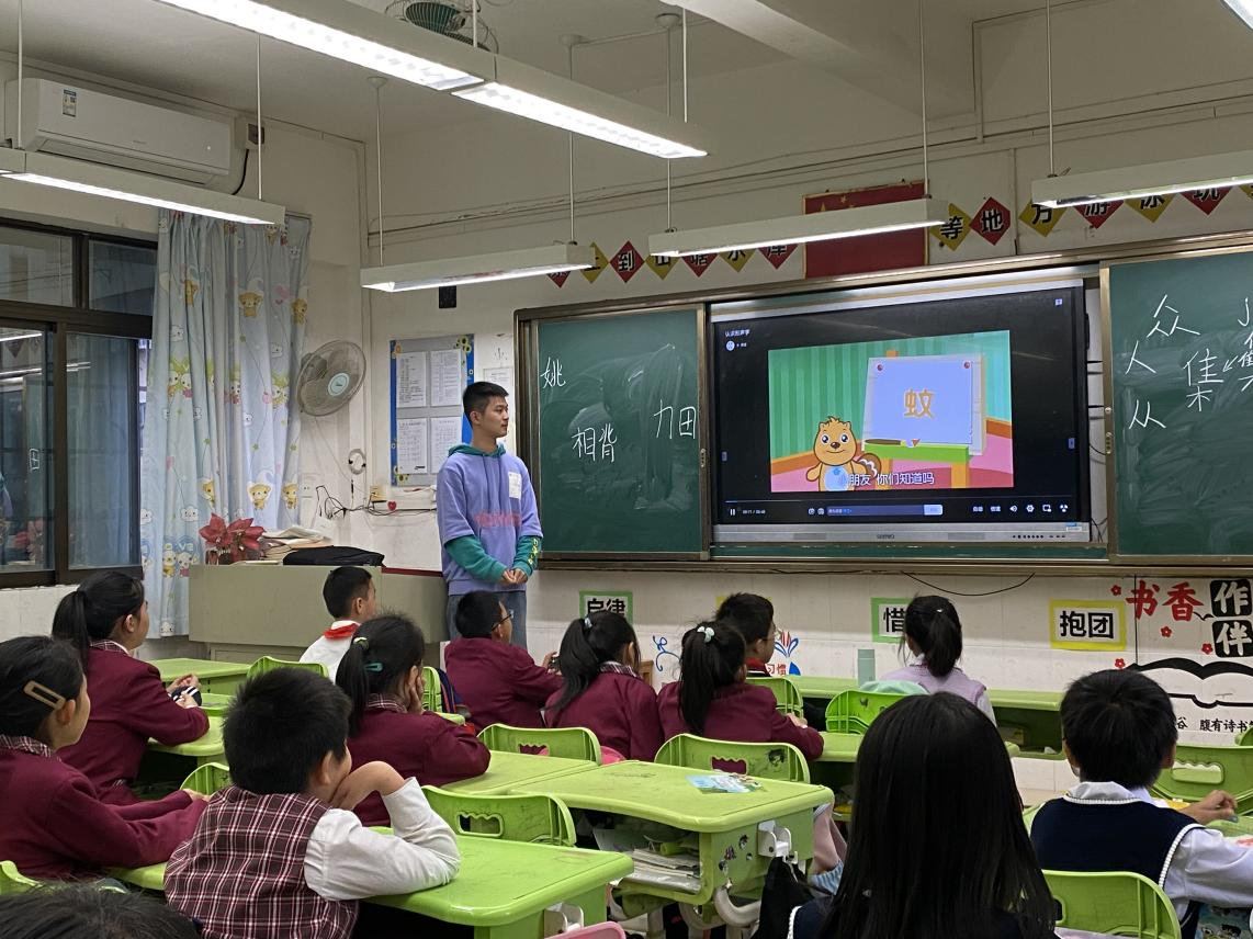 当悦耳的钟声响起时,指向的是课堂的开始,小朋友们有序地进入教室,带着好奇和期待。在本次的古文字系列课堂中,流溪小学的小朋友们迎来了古文字小课堂的最后一位“小老师”,他就是来自21级汉语言文学专业的姚瑞欣同学。