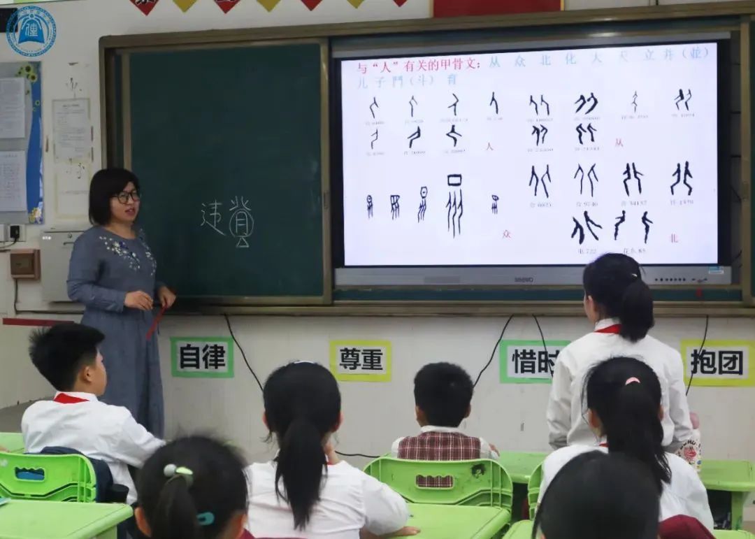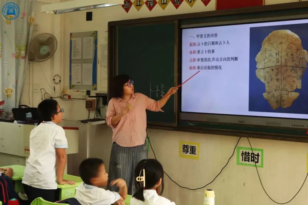 第一讲课堂,周凤玲老师带着甲骨文知识走进流溪小学,教授了以“甲骨文就在你身边”为主题的课程。这一节主要讲授了“甲骨文的定义与发现”,周老师带领小朋友们初步了解甲骨文,引起了小朋友们学习古文字的兴趣。