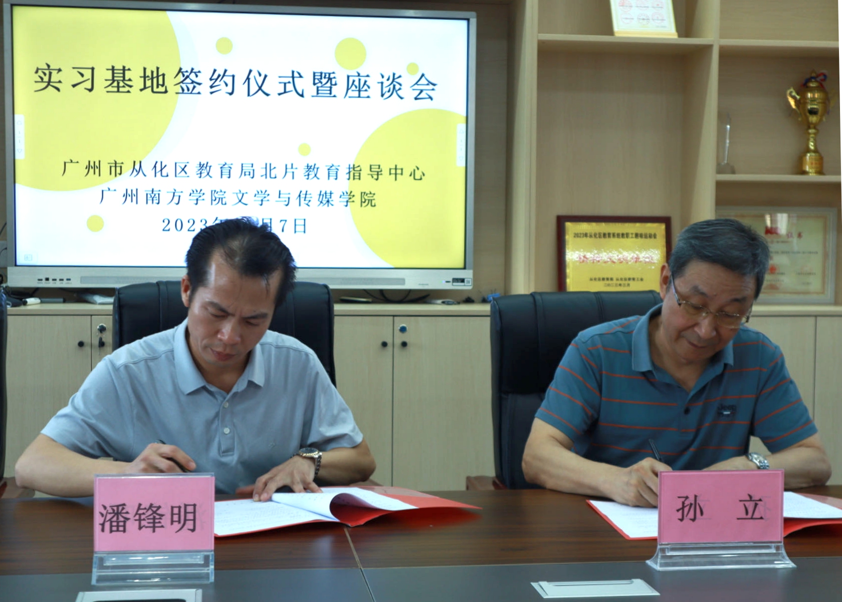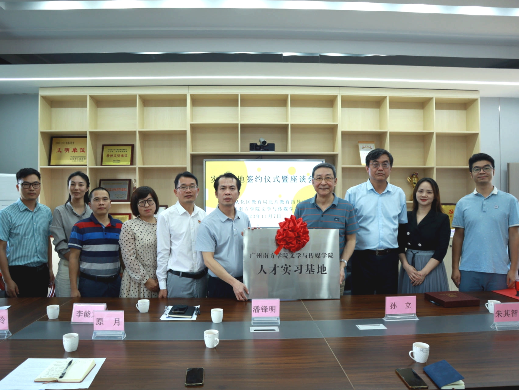紧接着,从化区教育局北片教育指导中心主任潘锋明与英国威廉集团院长孙立进行合作协议签字和实习基地挂牌仪式。潘主任表示,以此为契机,双方会在课程建设、教育科研、师资培养等方面开展更深入、更广阔的交流合作。搭建信息交流、对话协商平台,探索培养-实习-就业协同育人机制的有效途径。