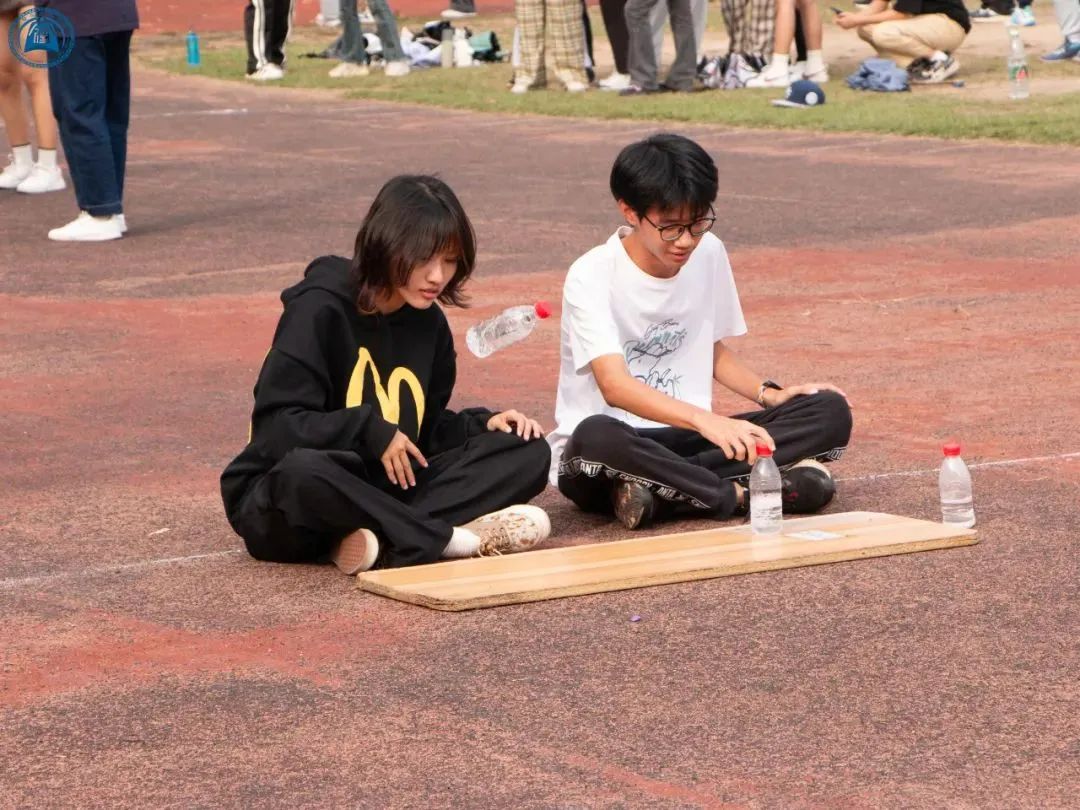 第三棒考验同学们的平衡能力,他们有的选择快速通过,有的则选择稳步前进。最后一棒需要将水瓶使他立在地上,考验同学们的翻转技巧与时机,一遍又一遍,直到水瓶立起那一刻。
