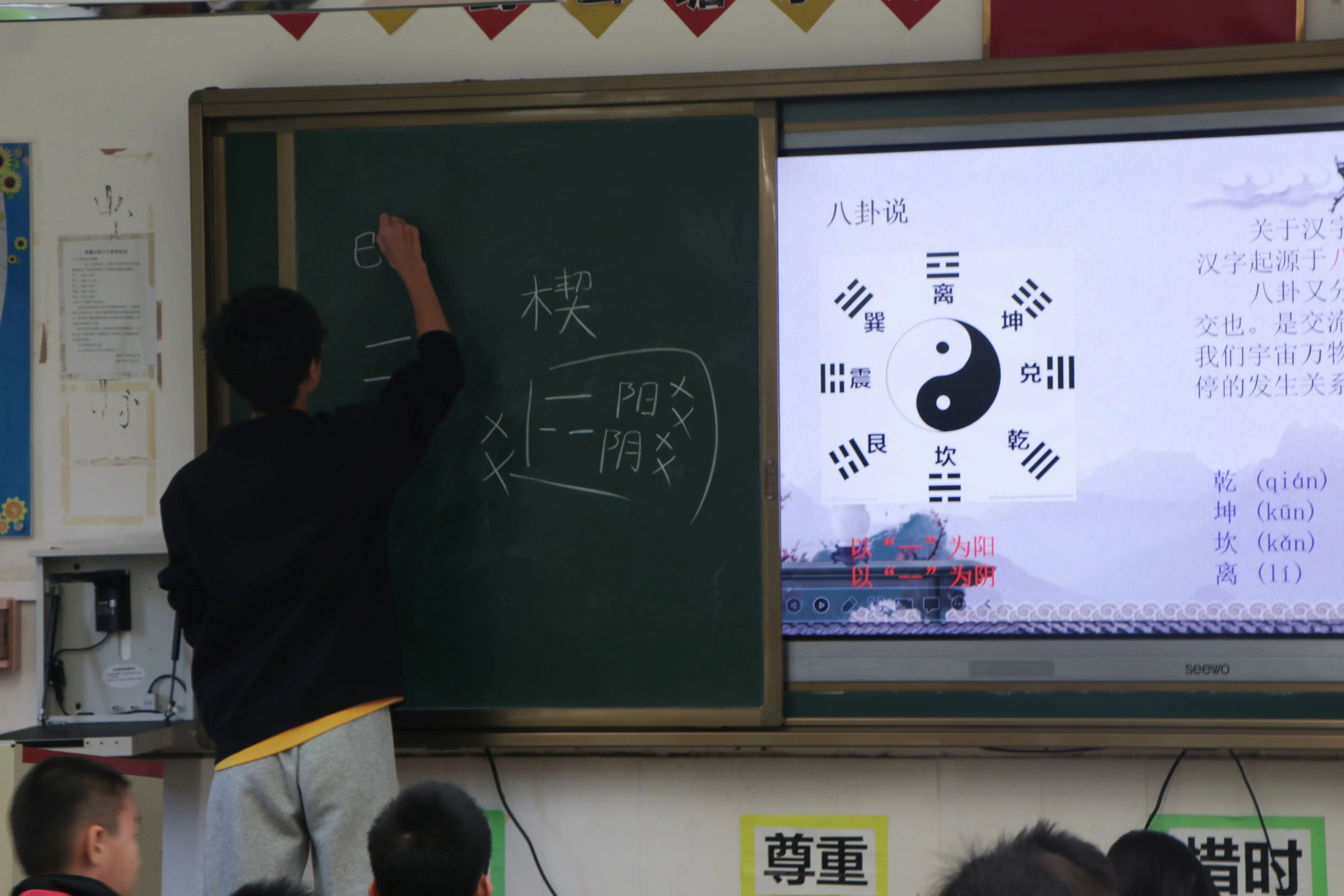 了解汉字的演变之后,小邓老师还向小朋友们介绍了八卦说。他以有趣的视频辅助教学讲解,并设置了抢答环节,激发小朋友们对学习的积极与热情,也帮助他们更好消化课堂知识。