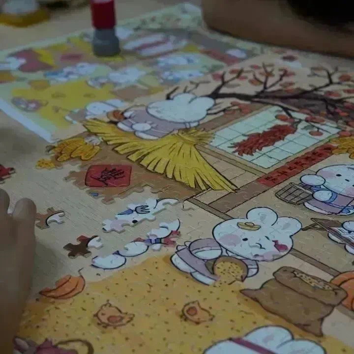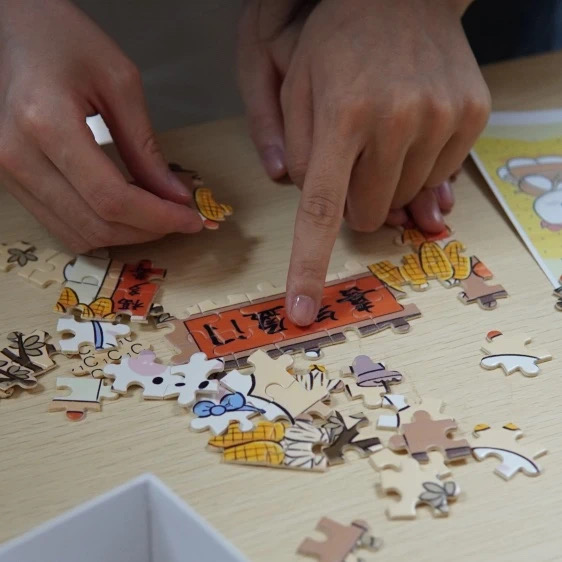 一块块拼图散落在桌面,好似浪迹在世界各地的游子,需要一股力量的指引返回到原来的家园与亲友共聚,如此才能称为完整。大家在拼图的过程中仔细寻找失落在外的“拼图”,一块也没有落下。