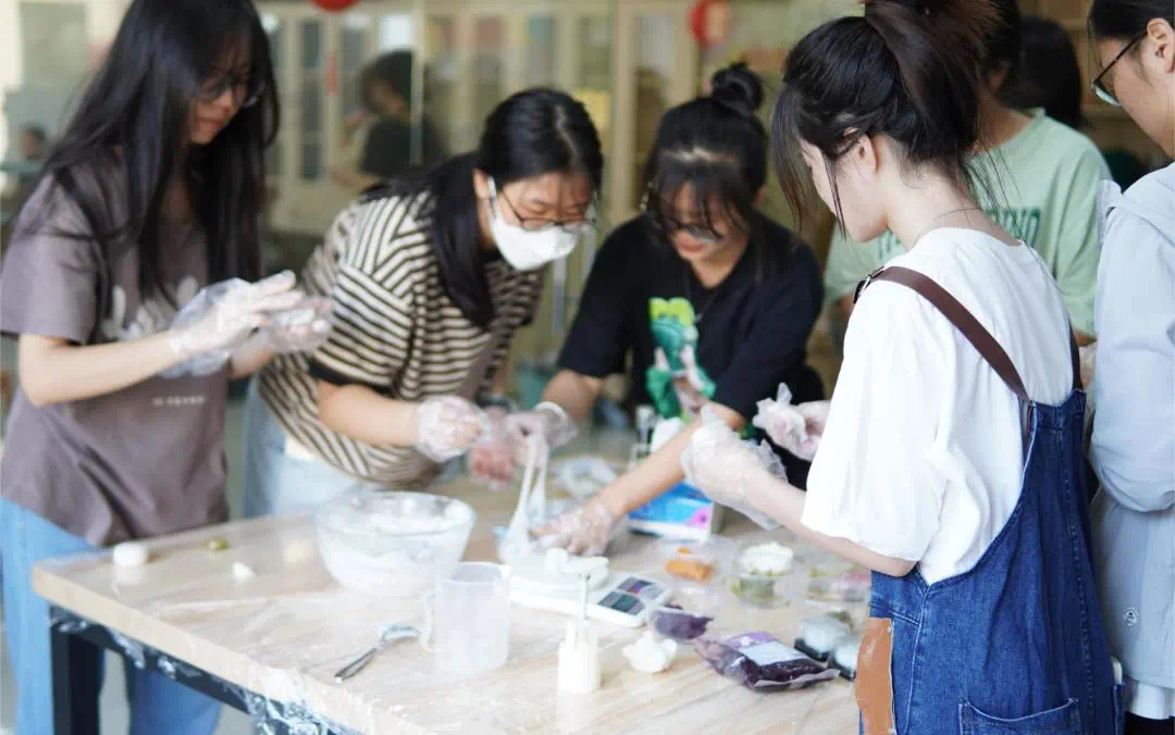 茕茕白兔,在一位位同学的妙手点缀之下,披上了绚丽的彩衣。同学们用手中的画笔大胆创作,全神贯注,想要将自己脑海中的玉兔形象,栩栩如生地出现在自己手上,将石膏兔子装点成独一无二的艺术品,成为一份独特的中秋礼物,体验着手工彩绘的乐趣。