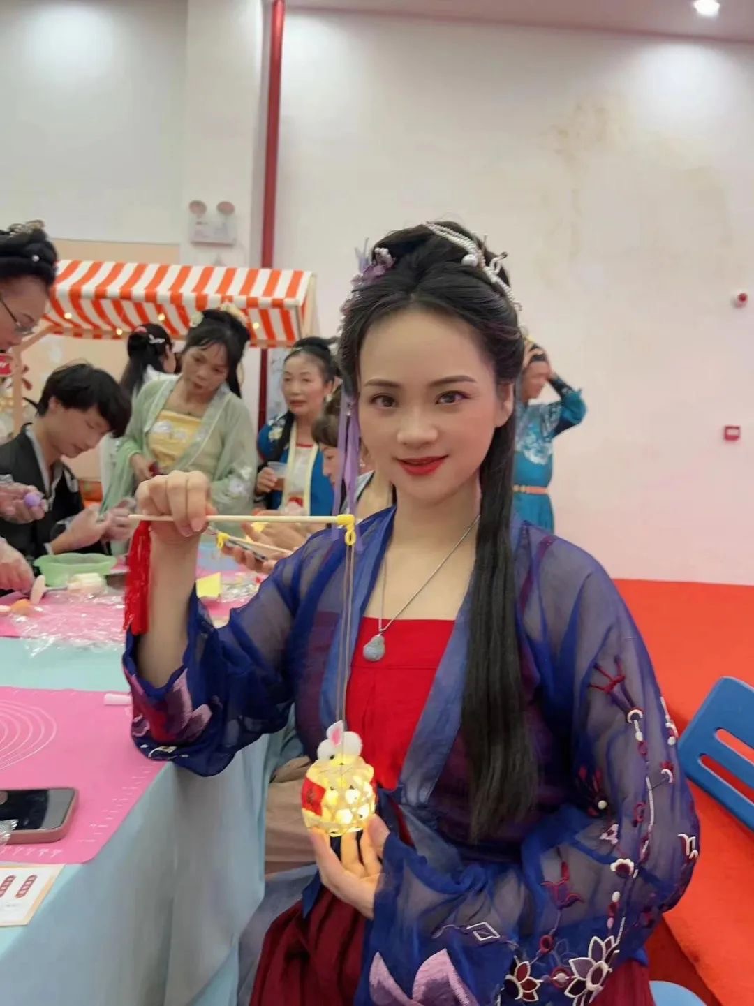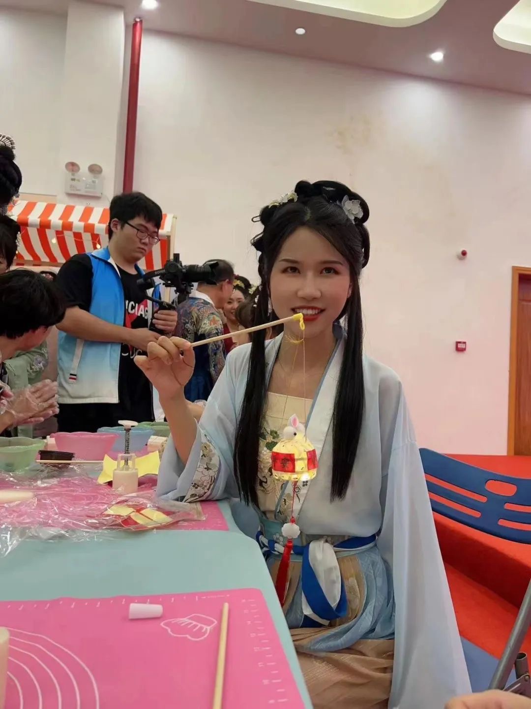 作为本次活动的主持人,2022级新闻学专业的汪一涵同学表示非常荣幸。“游园会”让她有不一样的体验:“大家都穿着汉服,开展古人的活动,自己做月饼,写书法,画团扇和点茶等活动,都让我更深入地学习到了一些中华传统的优秀文化,见识也更加广阔了。”