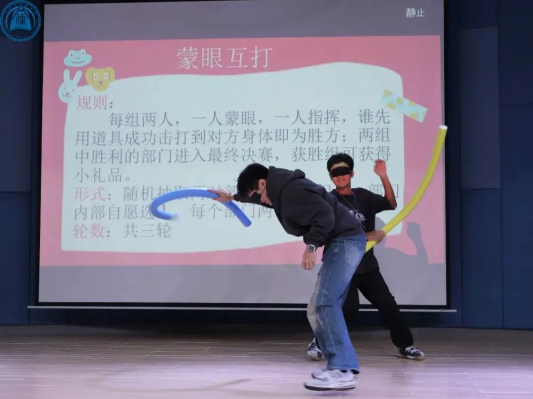 期间,紧张刺激的抽奖环节,各类小游戏互动让现场更加欢声雀跃。各部门踊跃参与了“蒙眼互打”“抢答猜歌”等互动游戏,彰显了我院团结积极的蓬勃精神。