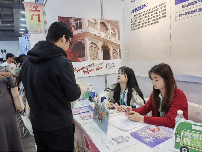 招聘会现场人潮涌动,“奋进‘十五五’ 湾区启新程”的主题横幅格外醒目,来自深圳、广州、佛山等地的优质企业齐聚一堂,覆盖教育、文化科技、现代公共服务、传媒运营等多个领域,为文传三大专业提供了丰富的岗位选择。