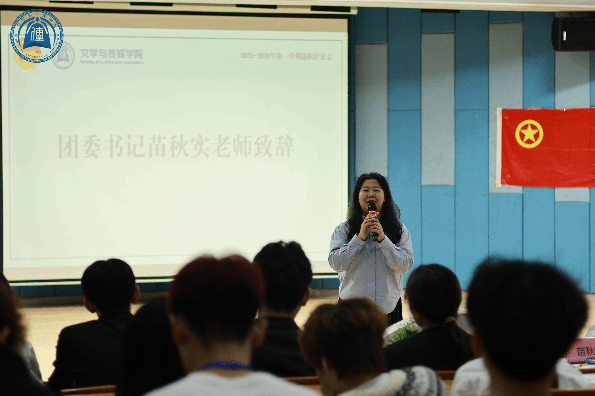 最后,团委书记苗秋实老师上台致辞,她首先向本次述职大会的相关负责人致以真挚感谢,同时对于文传学子所展现出的饱满生活热情、丰富的文艺气息和想象力予以高度赞赏,在介绍了其他几位指导老师的信息后,苗老师表达了自己对团委学生会发展所寄予的殷切期许,她希望全体团学成员能够坚守初心,永葆工作热情,以实际行动助力每一次团学活动的成功举办,为团学发展注入个人的青春力量。满丽老师和覃韵萍老师也相继发言,既表达了对于团学发展的十足信心,也寄予了深切厚望,并为团学的未来发展送上美好祝愿。