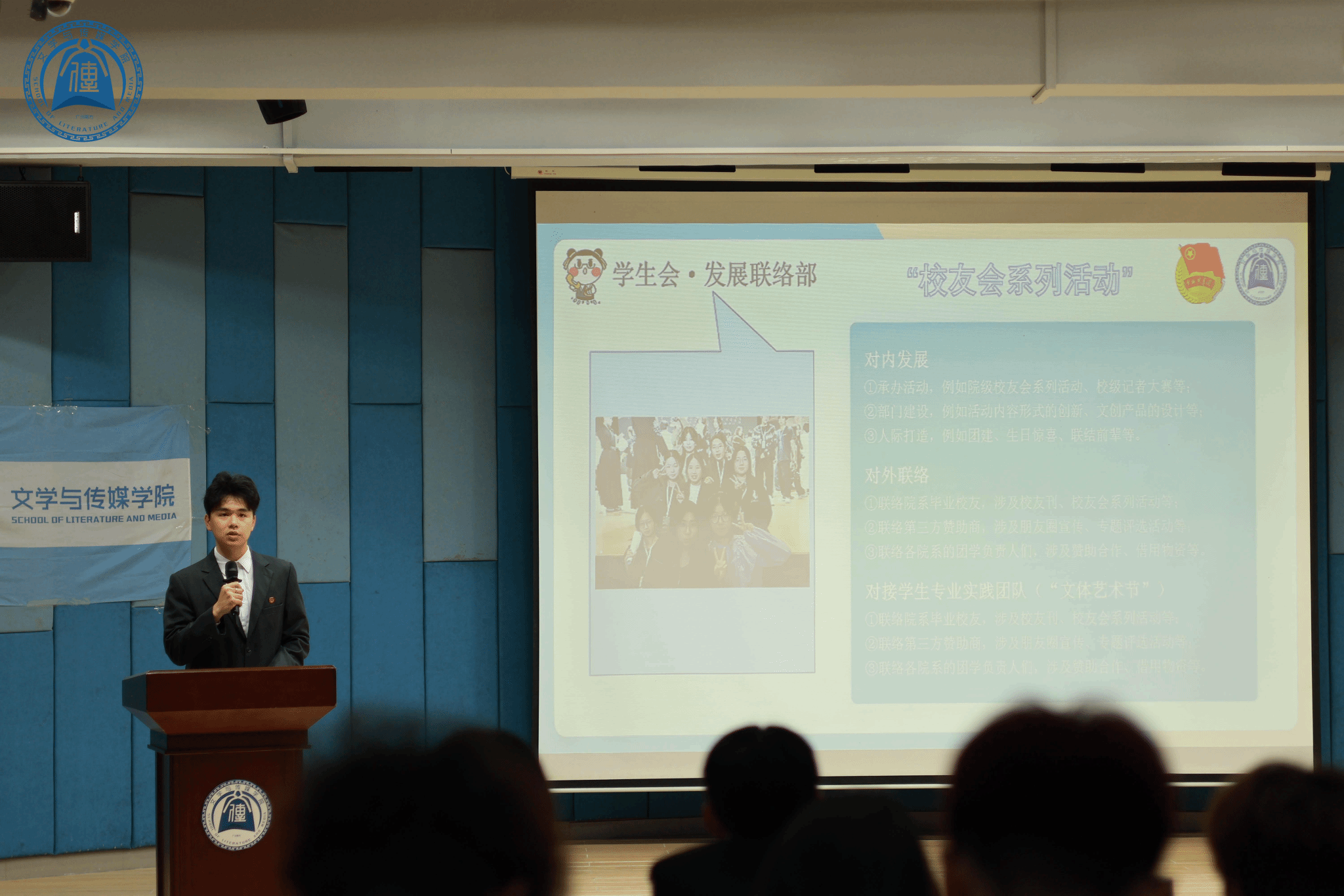 随后,团委学生会各部门依次述职,总结回顾上学期的工作情况,全面复盘不足之处,并对未来的工作进行科学安排。在活动策划和风采展示等方面,各部门均取得亮眼成果。例如,实践部所跟进落实的各式活动,增强了师生联系,提升了文传的凝聚力;学风建设部所组织筹办的各类赛事,调动了学生学习积极性,促进了校园文化的建设。