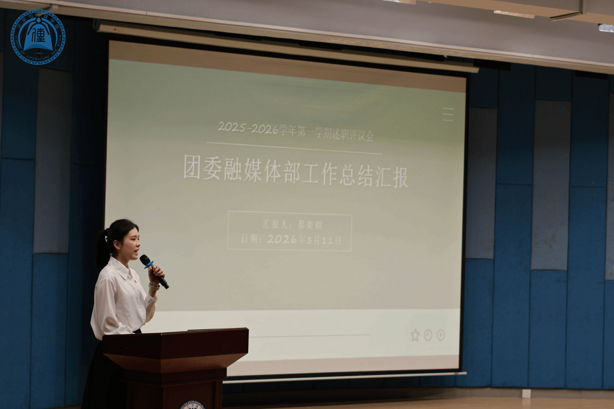 大会伊始,团委学生会负责人井一淳、雷坤、潘煜程、易智贤和刘星宇同学依次作工作述职。