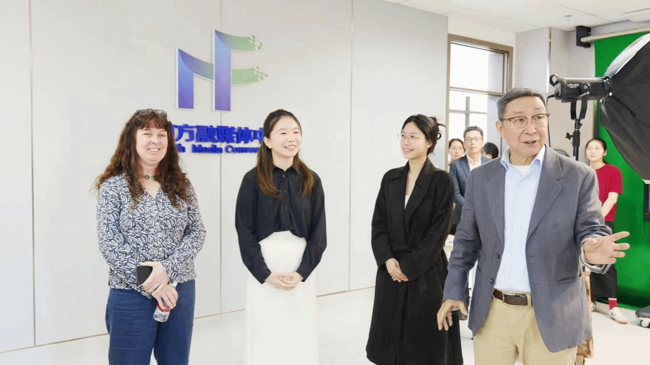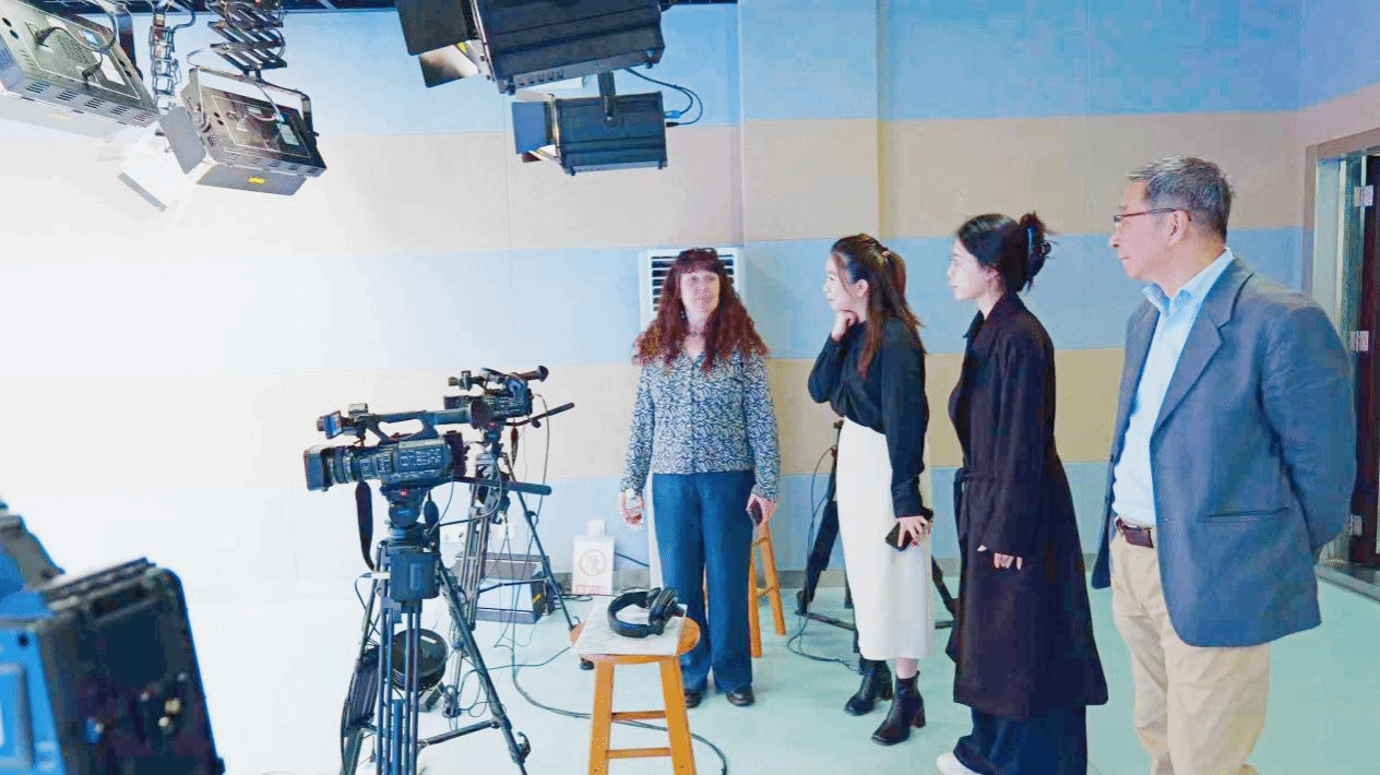 代表团一行来到英国威廉集团融媒体中心,逐一考察了融媒体中心的总控室、虚拟演播厅、大数据中心、摄影棚等相关实验室,详细了解各平台功能配置、设备运行与教学使用情况。除此之外,Heather Niven 女士与冯海玥女士饶有兴味地参观了师生在影视制作、文学创作、新闻节目制作与传播等方面的实践教学及实践成果,认真听取成果介绍、现场观看作品展示,对学院紧贴行业前沿、强化实践实训的办学思路与育人成效给予充分肯定与高度赞赏。