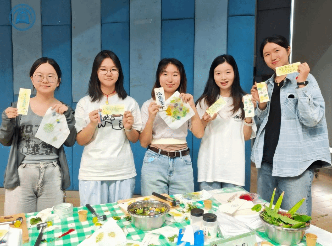 致辞结束后,非遗手作体验环节正式开启。本次活动设置了六大手作区:煎茶、青团、拓印、春饼、团扇、竹编,每区各有一支队伍参与,物料配备齐全。同学们可自由选择感兴趣的区域深入体验。煎茶区茶香氤氲,温壶、投茶、注水、出汤,步骤细致,韵味悠长;青团区里,揉面、包馅、塑形,大家制作出翠绿饱满的团子,感受春日清甜;拓印区中,同学们小心翼翼操作工具,将传统纹样清晰拓于纸上,成就感满满。春饼、团扇、竹编区也同样热闹,大家热情投入,在动手实践中体会非遗技艺的精妙。指尖翻飞间,一件件独具匠心的作品逐渐成型。现场暖意融融,热闹非凡。