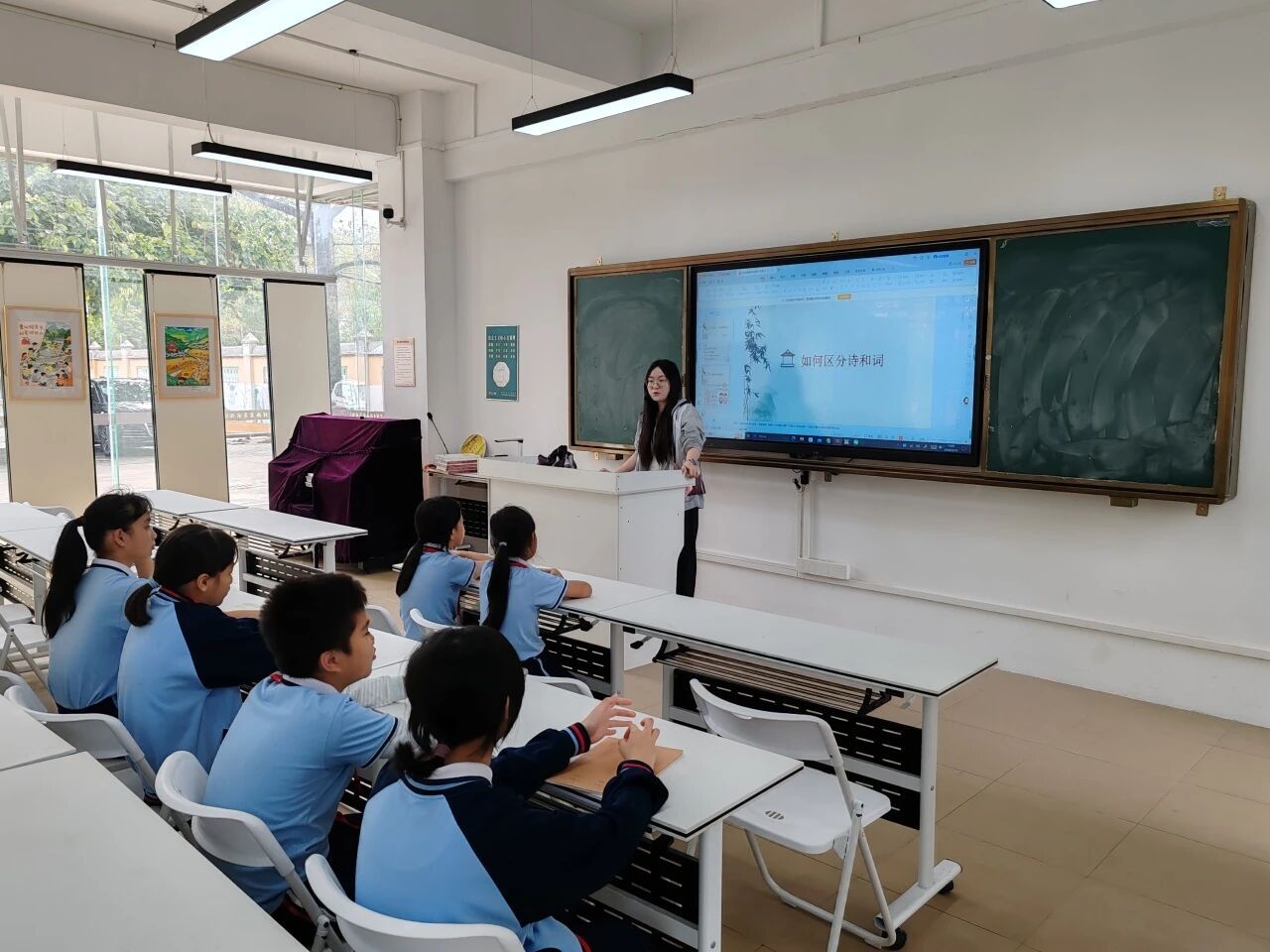 2026年3月18日下午,语言文字服务团队的成员们在指导老师杜欣莉老师的带领下,走进从化区善施学校。浸着墨香的古诗词课堂准备就绪,小朋友们走进课室,也走进了南唐词的细腻世界。