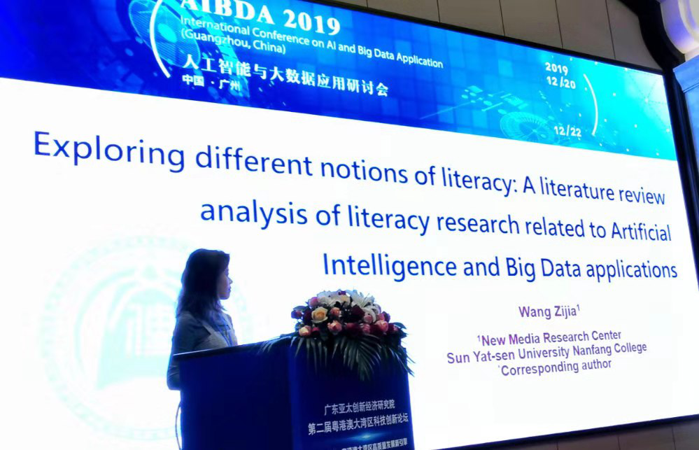 AIBDA 2019是2019国际科技创新学术交流大会(IAECST 2019)的一部分,此次会议由吴雪老师与赵蔓老师于12月21日在广州融创万达文华酒店会议中心以口头及海报形式发表,团队一共7篇论文,而网络与新媒体专业学生周昱瑾、孙思盼、刘宇、蒋晓琳亦以共同作者身分参与写作与发表。