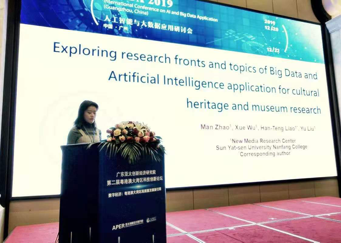 我院新媒体研究中心廖汉腾丶吴雪丶王子佳丶赵蔓丶许智超丶张宗贺老师于“人工智能与大数据应用研讨会”(AIBDA 2019)发表关於人工智能与大数据在人文丶社会科学丶生态设计丶识读能力丶文化遗产丶博物馆研究丶量化自我丶自我追踪丶积极心理学及积极科技等领域的前沿科学计量及文献回顾分析成果。