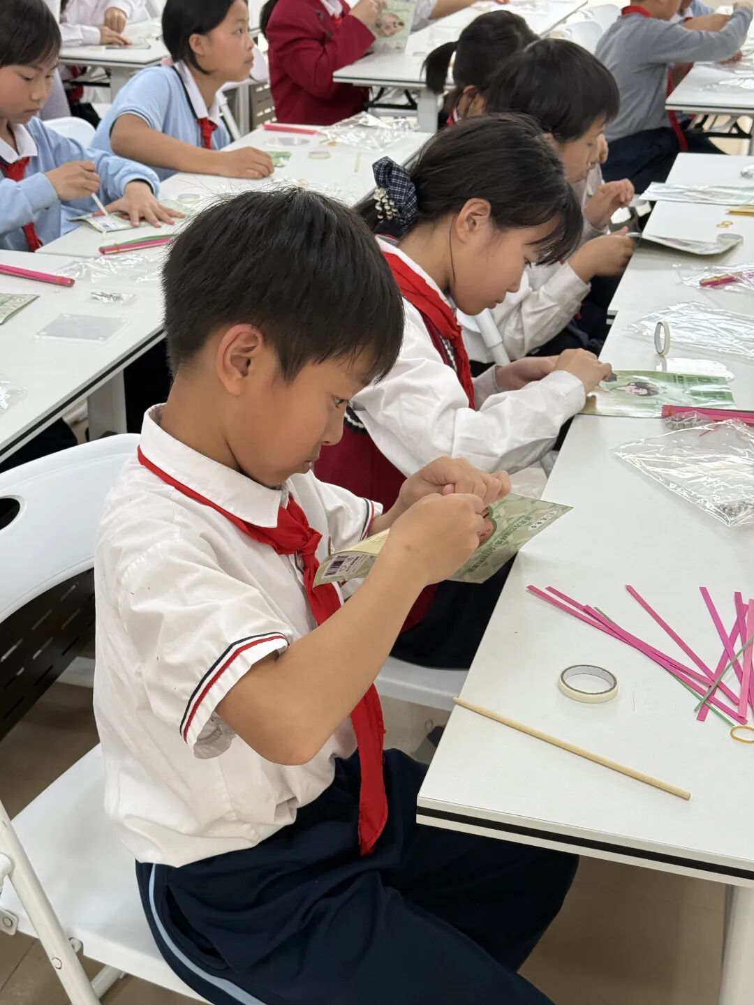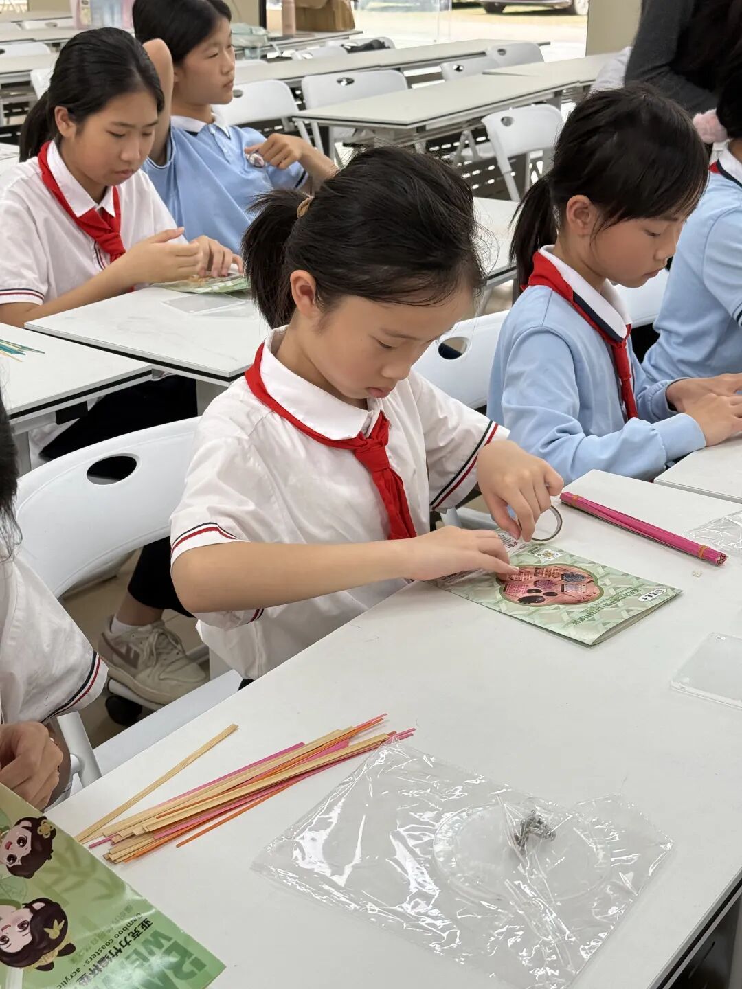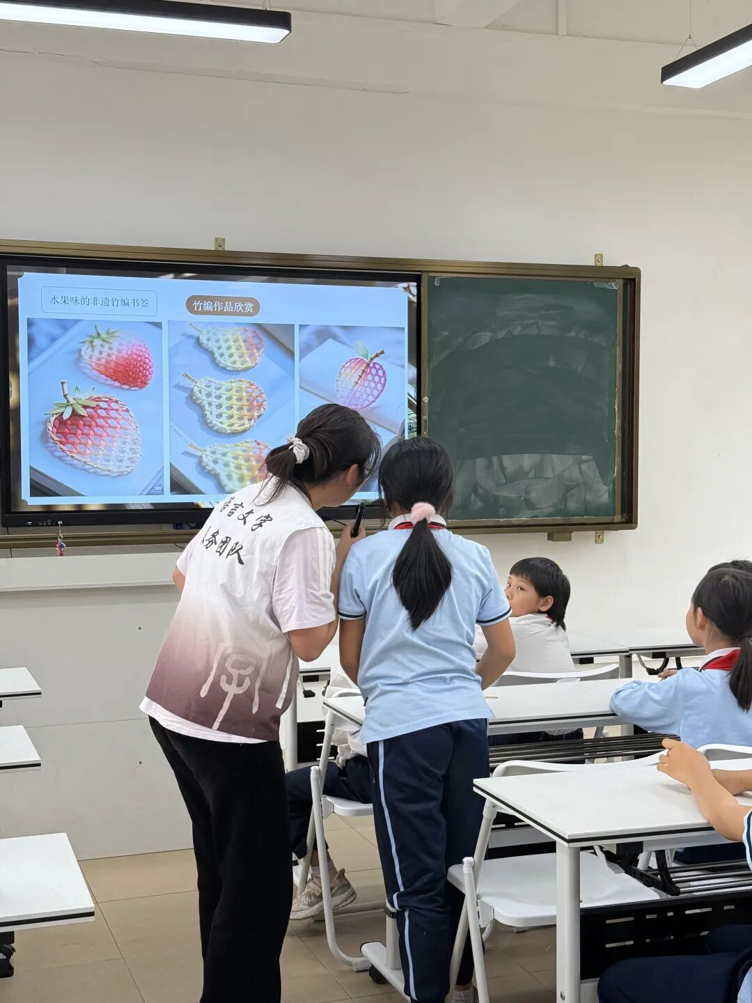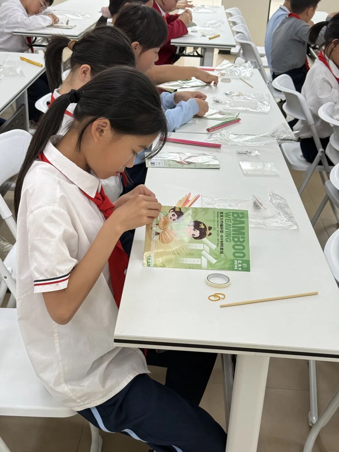 在同学们好奇的眼神中,小卢老师开启了今天生动而有趣的课堂。首先,小卢老师给小朋友们介绍了“什么是竹编”,让小朋友们在了解竹编的基础上进行手工制作。
