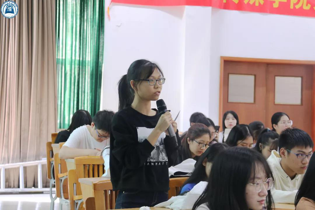 在演讲的尾声,卢老师解答了同学们的一些疑惑。有同学问到,对于文字功底较差的新生,如何完成本学期五十篇作文的任务?对此,卢老师认为:只要用心去写,脚踏实地,写作水平必定有所提高。对于同学提出的“如何摆脱“现代八股文”的束缚?”这一问题,卢老师表示,现代八股文是应试考试无法避免的问题,但大学是每个人思想飞越的阶段。同学们应在此阶段突破自我,逐渐积累,有意识的改变写作意识。此外,还有同学提出“如何在文章中形成自己的思想?”的疑惑。卢老师认为,思想的形成就像一块煤炭,是慢慢积累、慢慢形成的。而同学们要通过读书思考,在实践生活中体验,逐渐形成自己的观点。