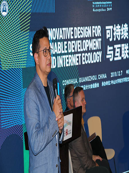 广州市从化区常委、常务副区长吴林波致辞时表示:期待此次会议成果能为粤港澳大湾区提供顶尖教育、厚积原始创新能力做出贡献。他从“生态文明”出发,呼吁更多人重视互联网生态设计的方法与实践,并提出三个期待:期待"以人为中心"的设计思维和“坚持以人民为中心的发展思想”相结合;期待"生态文明"的系统思维和“循环经济、绿色经济、生态经济”相结合;期待创新设计人才建设能在粤港澳大湾区有坚实的发展。