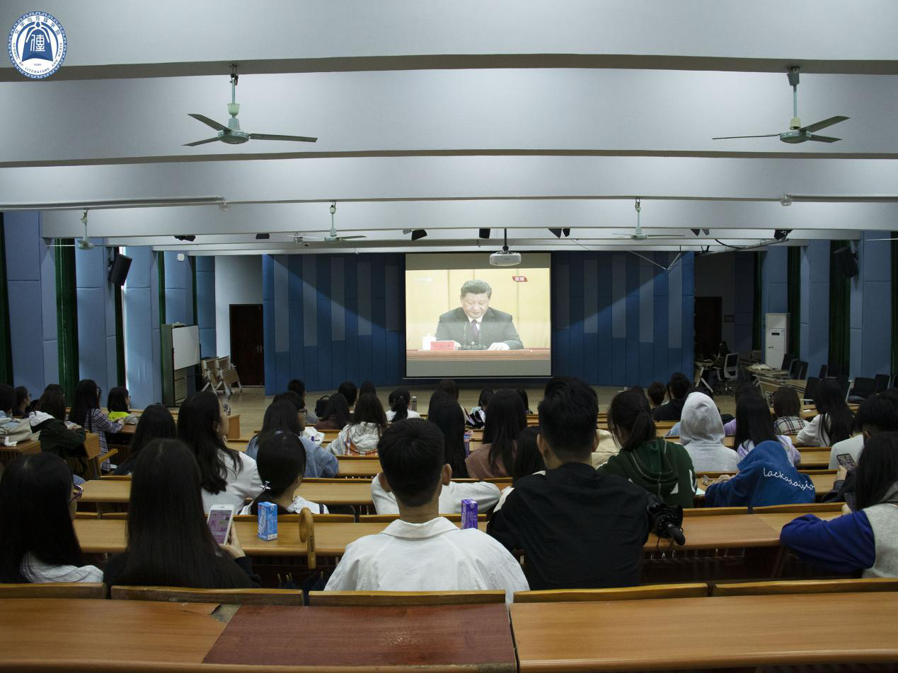 5月5日中午12时30分,我院团总支学生会组织团学各个部门部长和干事于1教105观看学习“纪念五四100周年大会暨青马工程公开课”。