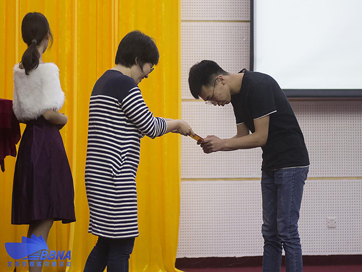 比赛结束后,我院罗旻老师为个人赛的冠军选手颁奖,并发表并总结发言。她表示,这次是她第一次参加“文海赛舟”知识竞赛。同学们的表现令她大开眼界,被选手们的风采所倾倒,并且赞扬了选手们拥有上台答题的勇气和丰富的知识贮备能力。而后我院学生办公室主任陈婷老师为团体赛的冠亚季军颁奖。
