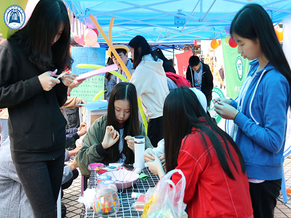 精彩的节目结束后,本次活动正式开始。我院实践部的义务摆摊活动内容为编手绳手工教学和麋鹿书签手工教学。精美的手绳与可爱的书签很快就为我们的摊位吸引了很多街坊市民,来者有白发苍苍的老奶奶,也有天真烂漫的孩童。他们听着同学们的耐心讲解,认真地投入到手工制作之中。