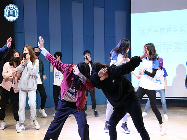 第一个游戏是“抱团游戏”。每组派出两位选手参与游戏,根据数字口令进行“抱团”。参赛者随着音乐围圈走动,只见主持人一声令下,参赛者迅速抱成一团,尖叫声此起彼伏,上演着一出出你争我抢的“爱恨情仇”。结果是几家欢喜几家愁。人数刚好的抱在一起欢呼雀跃,落单的同学则难免失落,有的跑错方向或者转晕了,撞成一团的情景让观众开怀大笑。