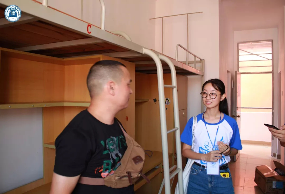 在送了几批新生到宿舍后,17级新闻学的黄同学终于有了一点空闲。她是这一届的新生学班之一。问到今天工作的感想,她对工作繁忙和辛苦未提一字,却关心着新同学。
