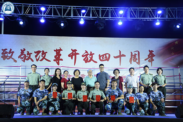 为弘扬爱国主义精神、致敬改革开放四十周年、陶冶我校新生思想情操,9月24日晚七点,“2018级新生军歌校歌歌咏展演决赛”于东区田径场隆重举行。