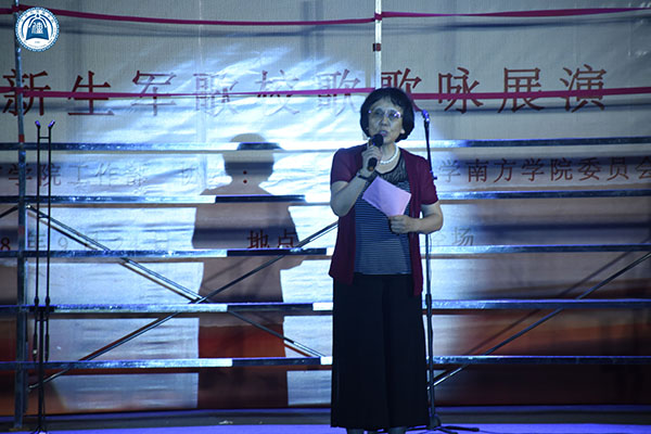 十支队伍演唱结束后,评委老师们对本次比赛做了精彩的点评,唐燕老师上台发表致辞,她表示新生们在舞台上能够唱出自己的心声,彰显青春的风采。同时,希望同学们能够把今天唱军歌的专注和精气神放在未来的学习生涯中。
