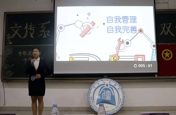 最后,肖君老师为大会致闭幕词,她充分肯定了团学这一年的工作,并对新一届团学委员会委员寄予厚望,期望他们牢记自己肩负着的信任与希望,继承文传系的优良作风和传统,努力拼搏,把我系的学生工作推上一个新台阶。