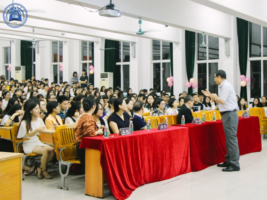 随后,我院教师代表肖贤彬教授也上台发言,肖老师对在座新生的到来表示欢迎,并用幽默风趣的语言告诫同学们不要荒废青春,不负父母的期许和良好的学习环境。此外,我院在校生优秀代表谢旖纳也与新生们分享了自己的大学生活,并用其亲身经历勉励新生要勇于尝试、不负韶华。