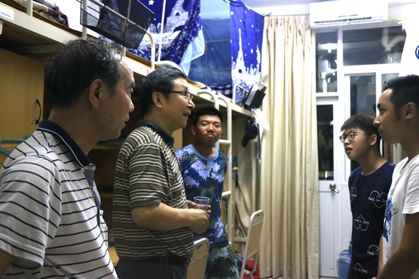 9月25号晚7点,我院孙立院长、李克和副院长和部分老师到新生宿舍走访慰问,对大一新生的到来表示热烈欢迎。孙立院长等一行人先后走访了新生入住的东区22和西学楼9、10号宿舍,每到一个宿舍楼,领导老师们都会仔细查看宿舍相关设施是否完善,提醒新生重视宿舍安全问题,妥善保管自己的贵重物品,提高自我保护意识。