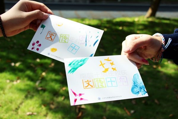 走上红地毯,校友们免费领取明信片,集齐“文、传、十、年”四个印字,每走过一段红地毯,方可盖一印章。这一走,四年种种过往仿佛近在眼前,离校仿佛还在昨天,道别仿佛还未开始,想念亦有尽头。拿到的不是明信片,而是承载了整个文传系的祝福和肯定。无论时隔多年,自己依旧是文传学子,这里依旧是家。
