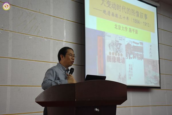 讲座上,陈平原教授深刻解析了晚晴画报的变化与特点。陈教授指出,中国人向来重文字轻图像,但图像能传达文字所不能达的、更准确的信息。画报以图像为主,文字为辅,用图像来表达新闻,它的出现是为了适应文化水平较低的群众的阅读需求,后来逐渐成为了宣传舆论、启蒙民众的工具。