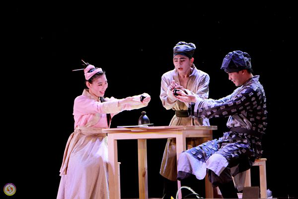 两种不同的剧目穿插连接,成就了一出古今悲喜交错的舞台奇观,话剧专有的陌生化效果与夸张的行为动作被淋漓尽致地表现出来,以“追寻”为主题贯穿着两个看似互不相关的故事,引起了思想上的碰撞,紫阳戏剧社的全新演绎带给我们新的震撼,新的感动。整个话剧的构思以及人物的表现,均展示了我系同学丰富的创造力和精湛的演技,获得了观众的一致好评。