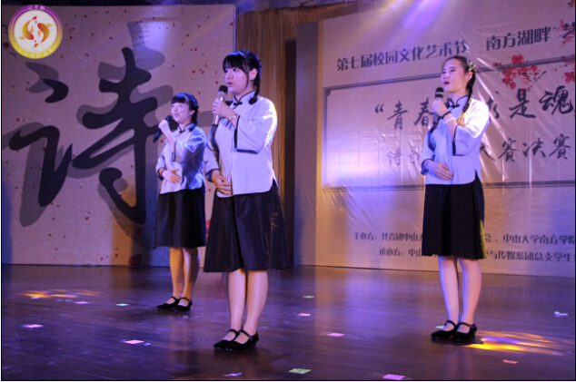 伴随悠扬笛声的响起,1号陈智锐带来了《长恨歌》的朗诵,再现唐玄宗与杨贵妃的凄婉爱情。5号拼命十三郎组合带来的《波西米亚的狂想曲》为我们刻画了一位坚强的小男孩,在经历过生活种种恐惧挑战后,最终直面惨淡人生,坚信未来一切都会好起来。7号“南芳年华”组合的《南芳爱情》以诗歌“四部曲”浅浅地向大家诉说了南芳湖畔的爱情故事,《你是人间四月天》象征初恋萌芽时的纯美;《我的爱情并不是一只夜莺》则展现爱情面临狂风暴雨时的情景;《插曲的尾声》描述感情面临冷战时的死寂;《来生书序诗》则描绘了历经考验后仍不离不弃的那种爱情。10号“春田花花”组合为我们带来诗歌《但是你没有》,以情侣间的柔情缠绵,为我们朗诵和表现出一段纯洁而美好的爱情,而这段爱情却未能如愿走到最后。最无奈的莫过于“我以为我们可以从青葱走到白头,但是我们没有”。 11号选手“回亿之丞”组合则带来了诗歌《献给我们的父亲母亲》。一声啼哭,划破沉寂,选手苦口婆心地劝导我们珍惜血浓于水的至亲之情,歌颂父母倾其所有的奉献,为我们铺垫青葱岁月。他们用那深情的表白,道出对父母的思念。12号“梦之声”组合带来诗歌《肆意梦想,邂逅爱情》,歌颂青春犹如永不停息的河流,诉说了在青春路上,当梦想与爱情相遇,我们也曾困惑。但幸好最终,我们都懂得拥有梦想是一种幸福,能够留住对方的心同样是一种幸福。