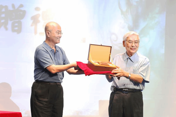 黄静波副院长介绍道,曾永义主要研究方向为中国古典戏曲、古典文学,并进行剧本创作,著作等身。在教学、研究之余,曾先生长年从事民俗艺术之维护与发扬工作,四十余次率团赴欧美亚非澳列国进行文化交流。近二十年来多次应邀到大陆进行学术演讲,或带团演出,对两岸学术交流做出了重要贡献。