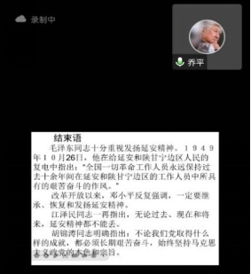 乔平老师指出,巍巍宝塔山,滚滚延河水,延安用五谷杂粮滋养了中国共产党并使之不断地发展壮大,支持了中国革命走向胜利。延安和延安人民为中国革命作出的巨大贡献,我们要永远铭记。