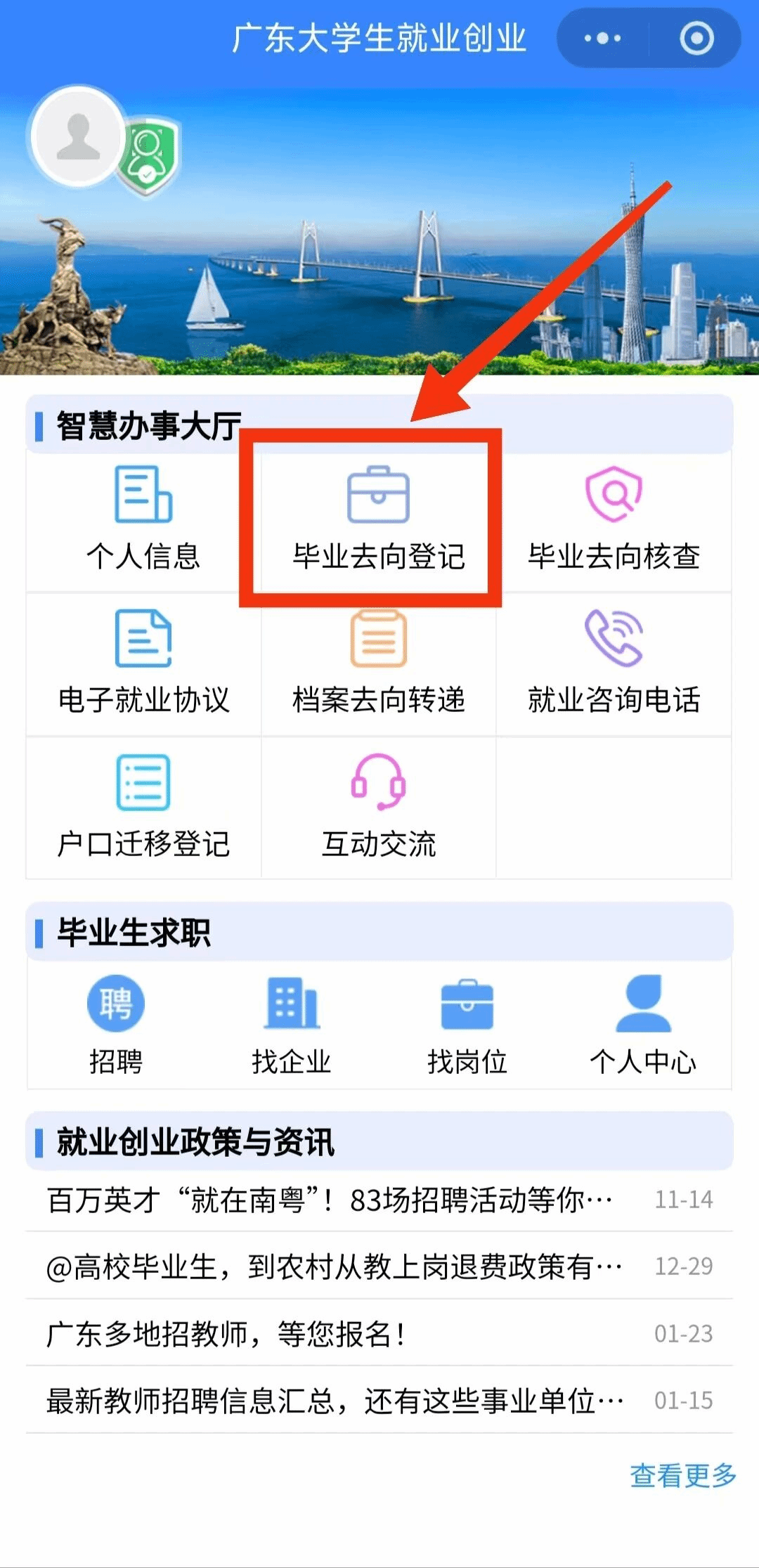 (一)登录“广东大学生就业创业”微信小程序