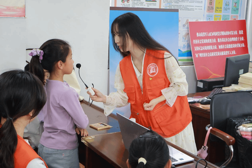 活动伊始,志愿者们以趣味互动拉开非遗体验的序幕,将非遗知识融入游戏,让孩子们在欢乐中迅速融入活动状态。非遗知识抢答环节,彭小芳同志作为小老师之一,提问 “面塑又被称为什么?”“我国常见的非遗项目有哪些?” 等趣味问题,孩子们踊跃举手、积极作答,在一问一答间让非遗文化的种子悄然播撒;经典的萝卜蹲游戏欢乐上线,孩子们热情参与,现场欢声笑语不断,为后续的非遗体验营造了轻松愉悦的氛围。