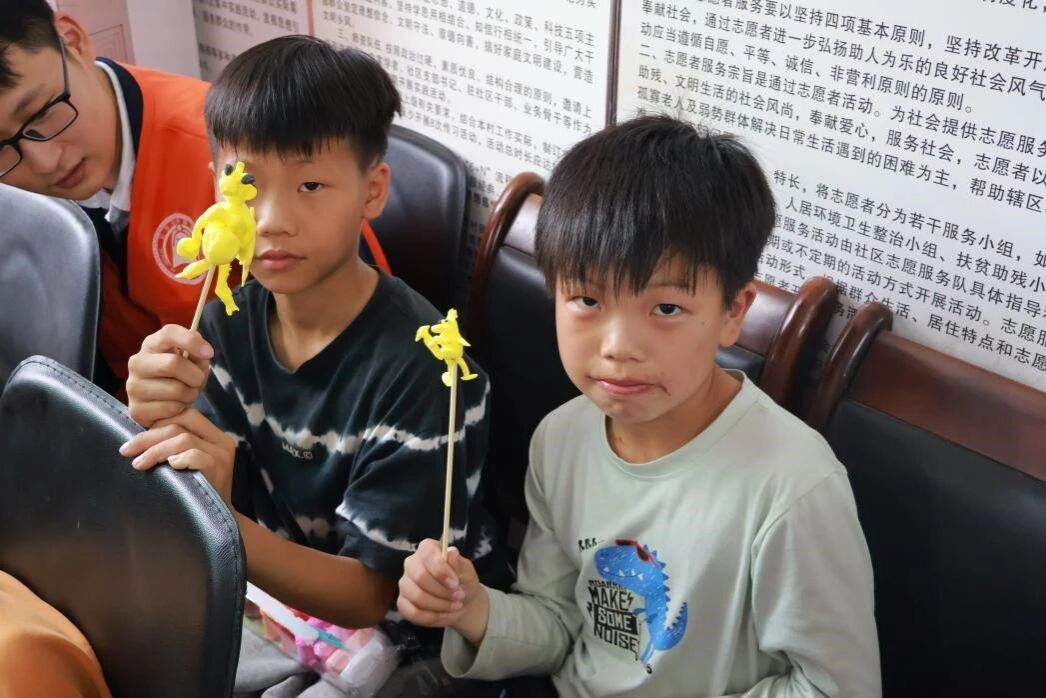随后的面塑手工体验环节,是孩子们最期待的时刻。志愿者们分组指导,为孩子们分发超轻粘土、竹签、垫板等材料,手把手教学揉、搓、捏、压等面塑基础手法。从经典的小雷锋帽,到憨态可掬的熊猫、兔子,志愿者耐心示范,孩子们认真模仿,指尖翻飞间,一块块普通的粘土变成了各式各样的可爱造型。志愿者们全程陪同,提醒孩子们注意安全、保持整洁,让每个孩子都能完成属于自己的面塑作品,在动手实践中感受传统非遗的匠心之美,体会创作的快乐。