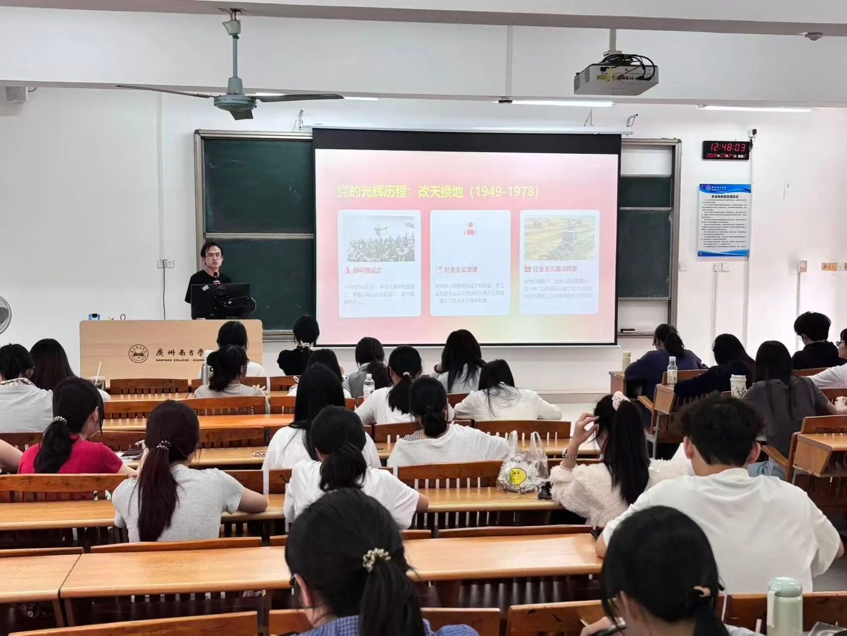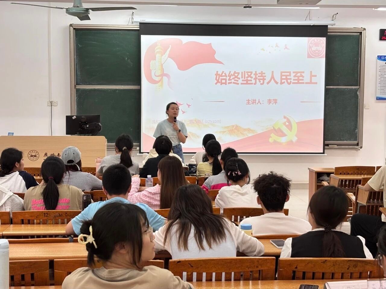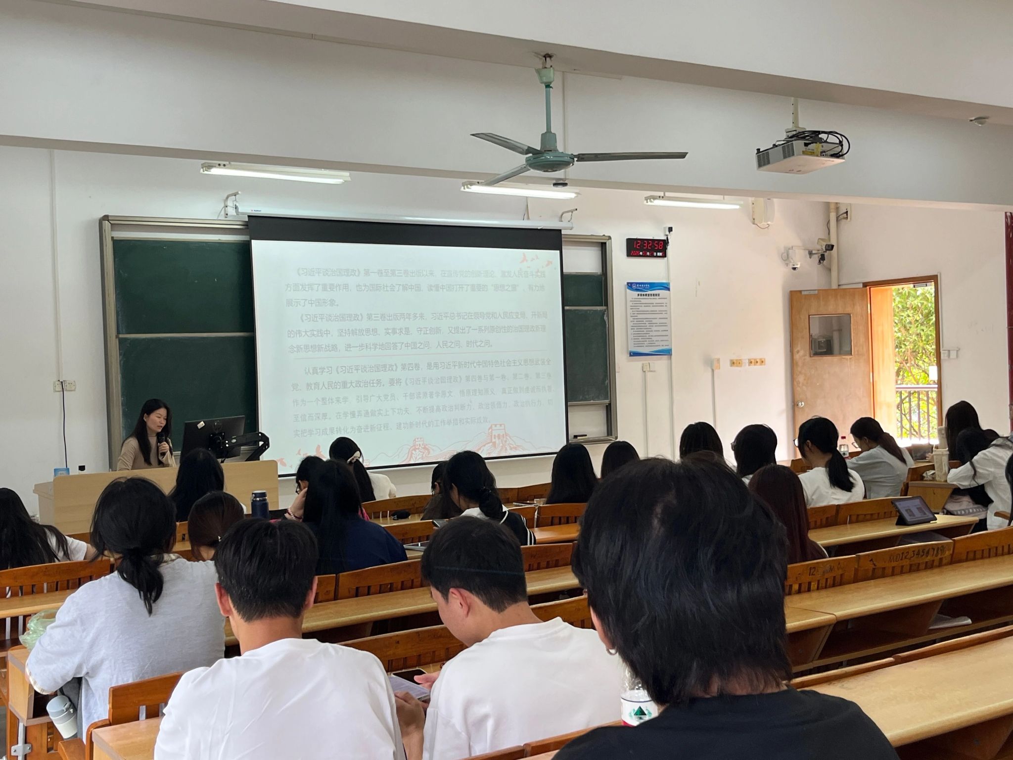 覃韵萍老师带领入党积极分子深入研读《习近平谈治国理政》第四卷的核心要义,结合当前国家发展形势与青年成长实际,对新时代治国理政的重要理念进行了深入浅出的讲解。她引导大家认真领会党的创新理论所蕴含的使命担当,用自然独到的例子帮助同学们理清理论逻辑、认清时代责任,让理论学习真正入脑入心,进一步坚定理想信念、筑牢思想根基。课堂上,她还鼓励大家把理论学习与日常实践结合起来,把个人成长融入国家发展大局,在学思践悟中不断提升政治素养与行动自觉,从而全面把握新时代党治国理政的方略,深刻领会党的创新理论的真理力量。