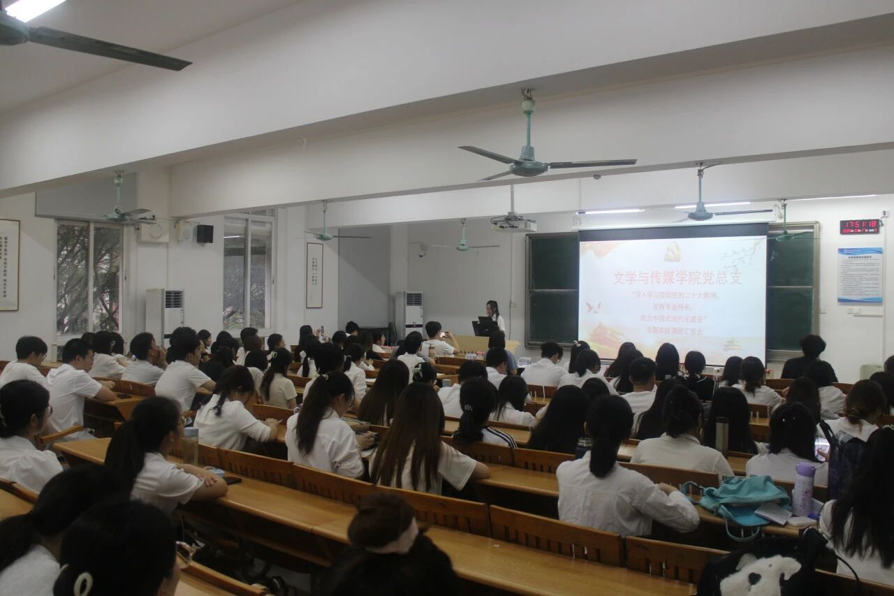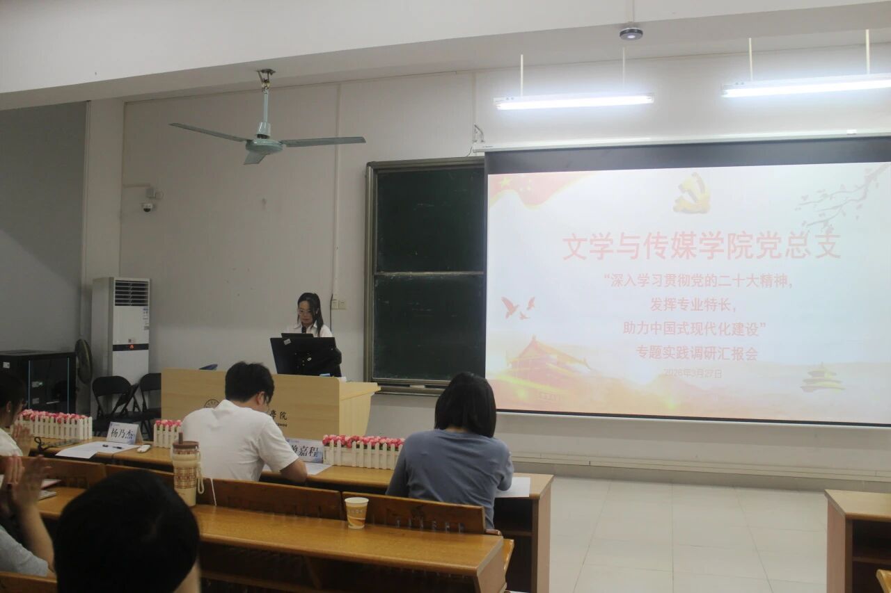 党课培训结束后,积极分子开展了党课培训实践汇报活动,以“深入学习贯彻党的二十大精神,发挥专业特长,助力中国式现代化建设”为主题,学员们结合汉语言文学、网络与新媒体、新闻学专业特色,从文化传承与创新、新媒体赋能乡村振兴、新闻舆论引导力提升、数字人文与传播、讲好中国故事等方向开展小组讨论,并进行展示汇报。本次汇报与分享活动,为学员们搭建了思想碰撞与实践结合的平台,不仅加深了他们对党的二十大精神的理解,也让他们对专业服务社会、助力中国式现代化有了更透彻的领悟,明确了自身在时代发展中的责任与担当。