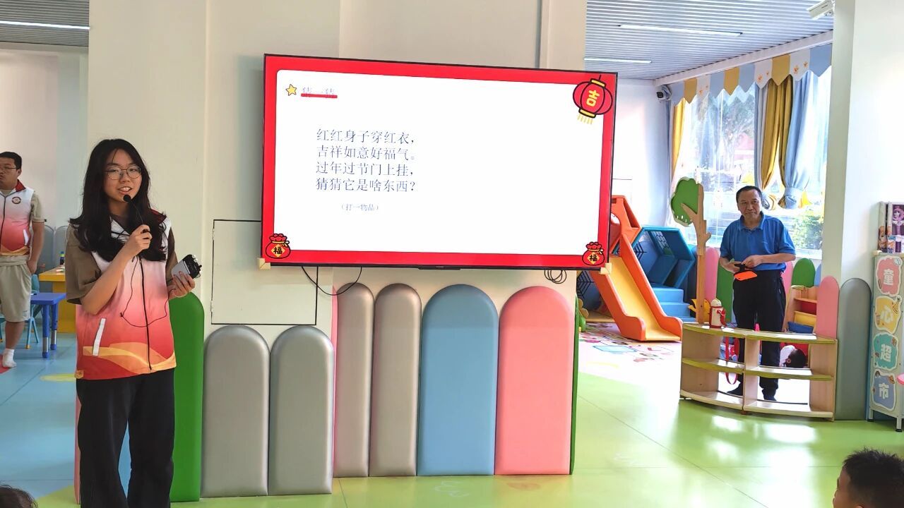 本次中国结课的“小老师”是卢巧莹同志,“红红身子穿红衣,吉祥如意好福气。过年过节门上挂,猜猜它是啥东西?”小朋友们的注意力立刻被小老师抛出的谜语吸引,纷纷开动脑筋抢答。当“中国结”的谜底揭晓时,今日课堂的主题在阵阵欢快的掌声徐徐展开。