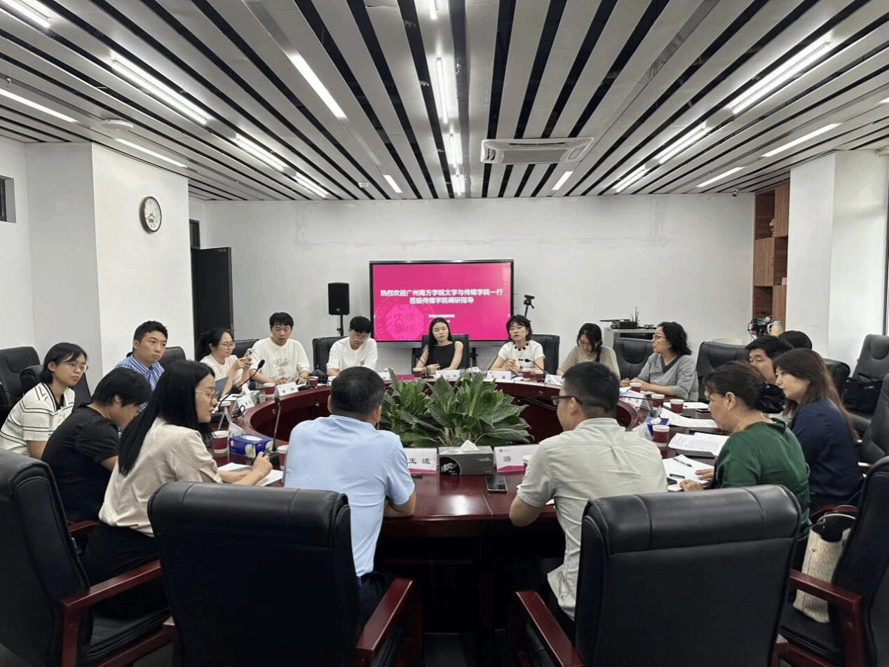 2025年5月7日下午,英国威廉集团副院长游鸽博士率教师代表团赴深圳大学传播学院开展调研交流。双方围绕智能媒体时代新闻学、网络与新媒体专业的人才培养模式、课程改革及实践教学体系进行深入研讨,深圳大学传播学院副院长黄玉波及相关专业负责人参与交流。